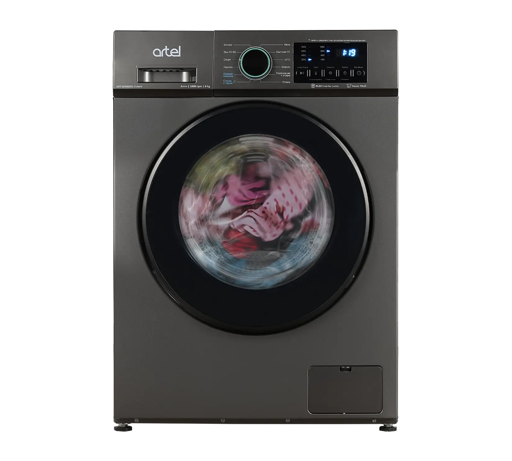 "title": "Avtomat kir yuvish mashinasi Artel 6001 Aero Invertor Bug' bilan 6 kg",